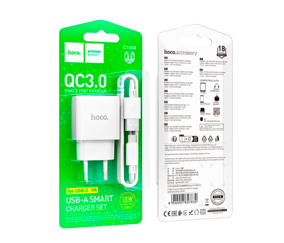 Компактний і потужний мережевий адаптер зарядки з кабелем для швидкої зарядки сучасних мобільних пристроїв. Набір забезпечує безпечне та стабільне харчування смартфонів, планшетів та інших гаджетів із підтримкою Type-C.