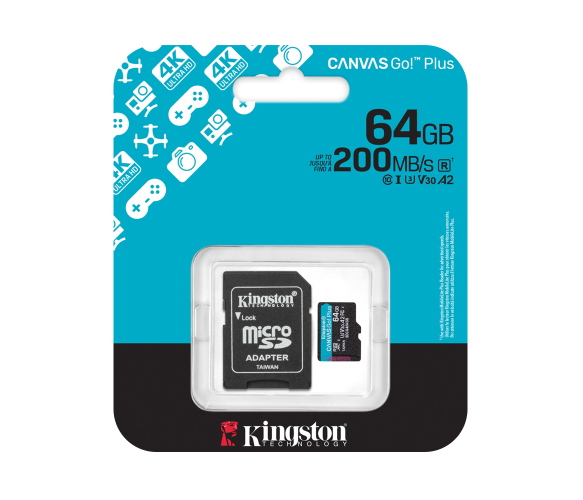 Карта пам'яті Kingston Canvas GO! Plus microSDHC Class 10 UHS-I U3(R200MB/s), 64GB