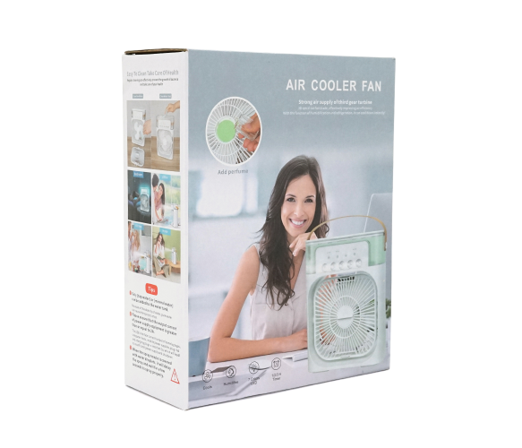 Портативний настільний вентилятор CB-410 з охолодженням, 160х160мм, 3 режими, живлення 220В, USB-кабель, White, Box