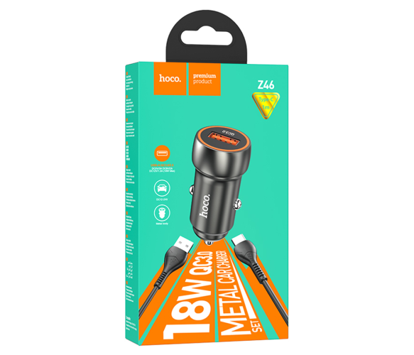 HOCO Z46 підтримує технологію швидкого заряджання Quick Charge 3.0, завдяки чому сумісні пристрої заряджаються значно швидше, ніж від звичайних адаптерів. Компактний металевий корпус не займає багато місця та гармонійно вписується в інтер'єр автомобіля.