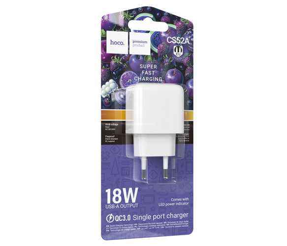 Компактний та потужний мережний зарядний пристрій з одним USB-портом, що забезпечує швидке заряджання мобільних пристроїв. Підходить для використання вдома, в офісі або подорожах завдяки широкому діапазону вхідної напруги.