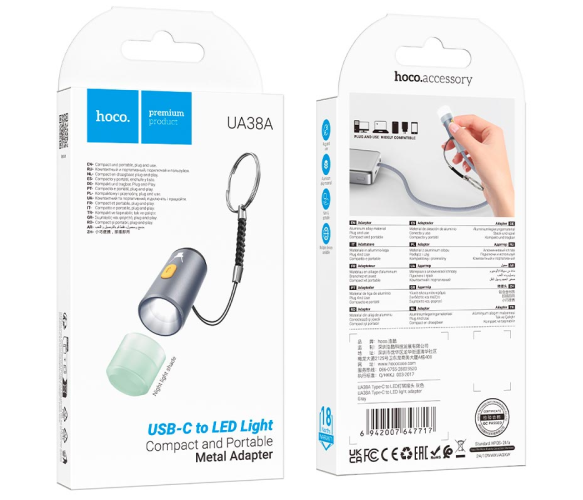 Перехідник-ліхтарик HOCO UA38 від Type-C, Gray, Box