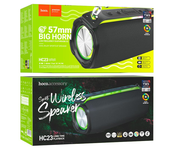 Портативна колонка HOCO HC23 IPX4, BT 5.0, 2x5W, RGB підсвічування, Black, Box