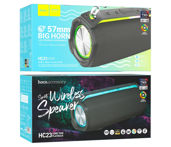 Портативна колонка HOCO HC23 IPX4, BT 5.0, 2x5W, RGB підсвічування, Gray, Box