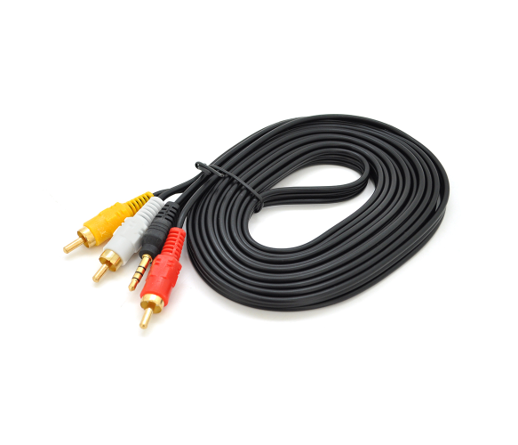 Кабель DC3.5 (тато) => 3хRCA (тато), GOLD Jack3.5мм, довжина Jack 17мм, CU, круглий, Black, 3 м, (Пакет) Q300