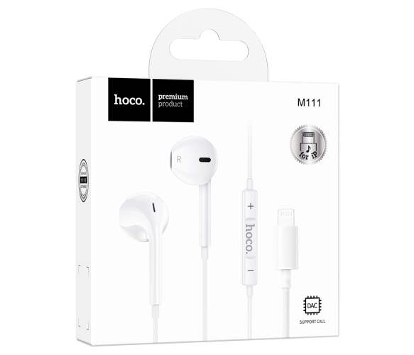 Навушники провідні HOCO M111, роз'єм Lighting, 1.2m, White, Box