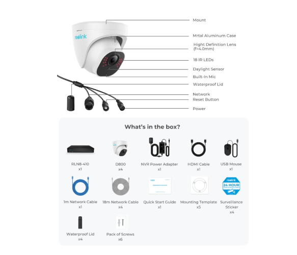 Комплект з 4 купольних РоЕ камер, реєстратора, розрахованого на 8 камер та жорсткого диска. Всі камери обладнані восьмимегапіксельними об'єктивами, аналітикою з розпізнавання людини та автомобіля у кадрі. Камери захищені від пилу та вологи за стандартом IP66 та готові до встановлення на вулиці. Ви отримаєте миттєві повідомлення, коли потрібна ваша увага.