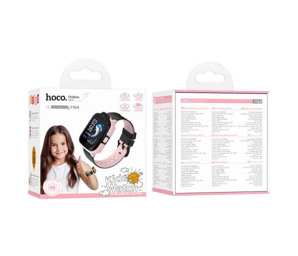 Дитячий смарт годинник Hoco Y104, 4G, GPS, Wi-Fi, HD камера, 1.69" HD-дисплей, дзвінки, відеодзвінки, голосові повідомлення, Pink, Box