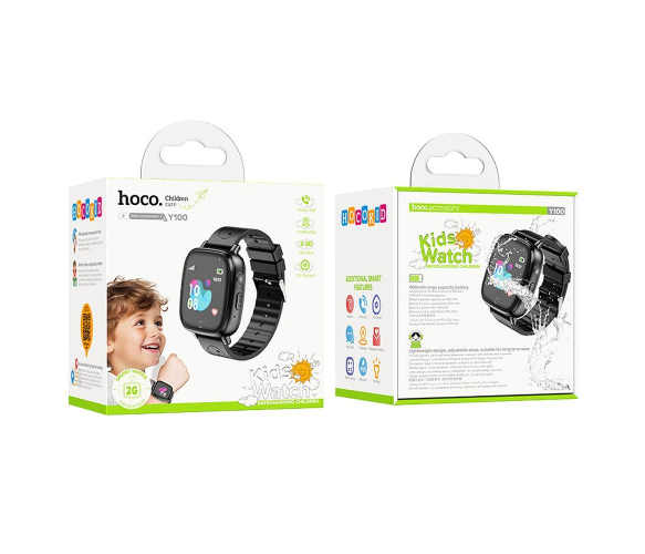 Дитячий смарт годинник Hoco Y100, функція дзвінка та камера, кнопка SOS, ліхтарик, Black, Box