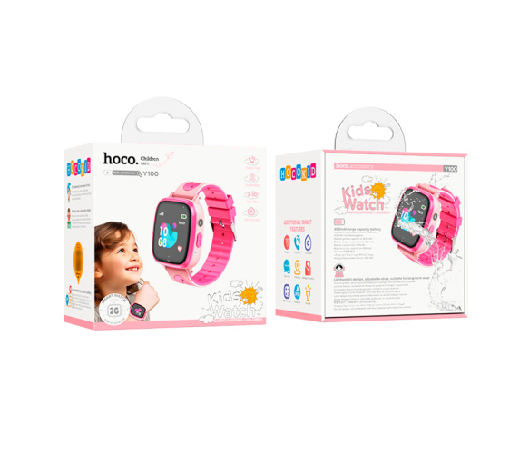 Дитячий смарт годинник Hoco Y100, функція дзвінка та камера, кнопка SOS, ліхтарик, Pink, Box