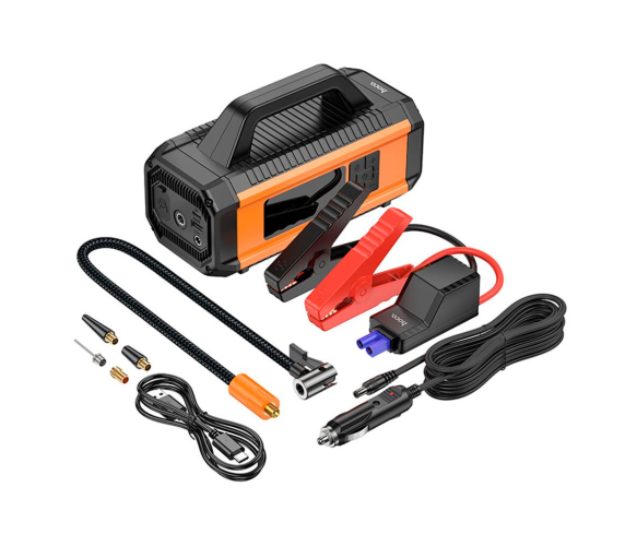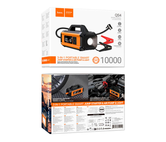 Пусковий прилад для акумулятора автомобіля+ насос HOCO QS4, Power Bank 10000mAh, 2xUSB+ Type-C, корпус пластик, Box