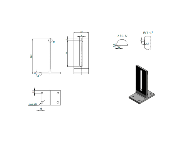 Кронштейн Т-подібний алюмінієвий (40*94.5*58/товщина 4.5)