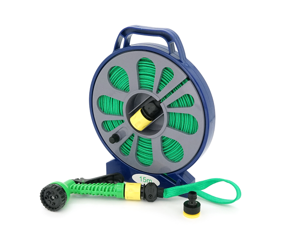 Шланг поливальний на котушці 15м + розпилювач, насадка на кран, Green, Box