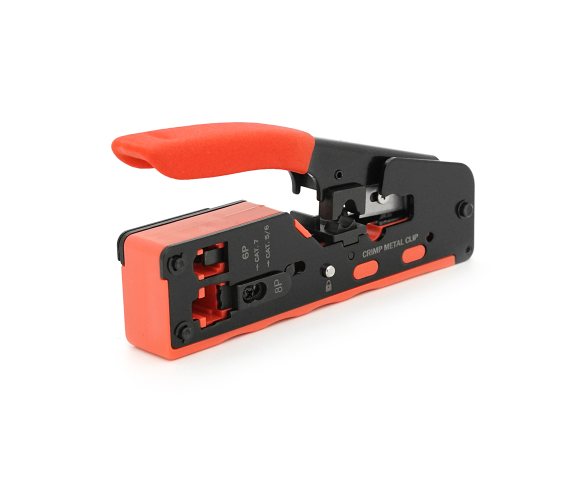 Інструмент HT-718 для обтискання, RJ-45 (8P8C) та RJ-12 (6P6C), 6P/8P + обрізка наскрізних конекторів зачищення зовнішньої ізоляції кабелю