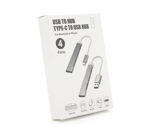 Хаб Type-C, 4 порти USB 3.0, 10 см, Black, Blister