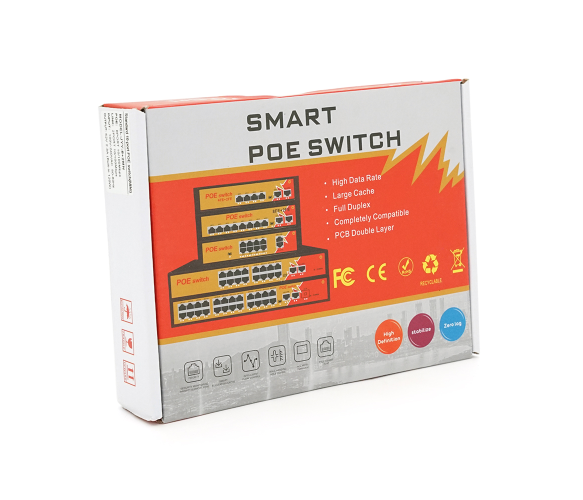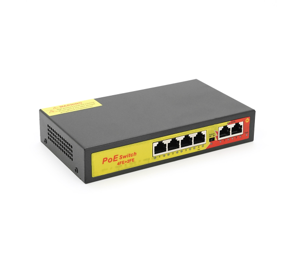 Комутатор POE з 4 портами POE 100Мбіт + 2 порт Ethernet (UP-Link) 100Мбіт, 52V/1.44A, 100/250метрів, корпус - метал, Black, БП вбудований, Q20
