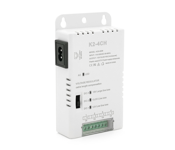 Імпульсний блок живлення з регулюванням напруги 12/13,5/15V-4.2A/4CH по 1А, у пластиковому корпусі, 4-х канальний