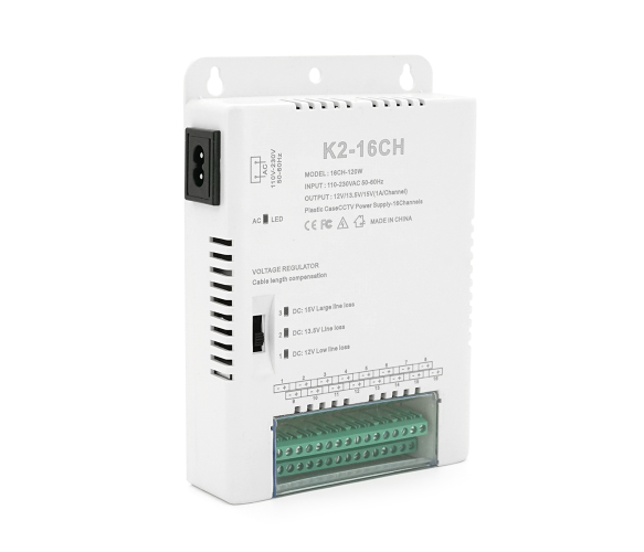 Імпульсний блок живлення з регулюванням напруги 12/13,5/15V-10A/16CH по 1А, у пластиковому корпусі, 16-ти канальний