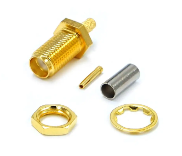 Роз'єм ВЧ SMA Female для кабелю RG-316 RG-188 RG-174 LMR100 SFF50-1 SFF50-1.5 і аналогів із зовнішнім діаметром ізоляції до 2.52 мм і центральною жилою 0.5 мм. Центральний пін монтується на центральний провід кабелю методом пайки. Роз'єм затискається на кабелі обтискним інструментом (кримпером).