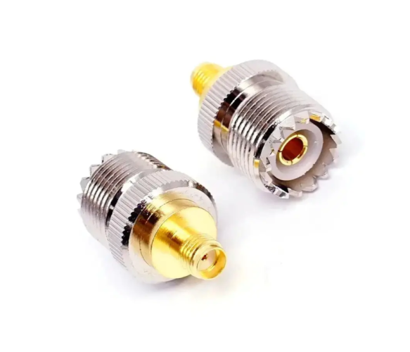З одного боку знаходиться роз'єм SMA Female, який має зовнішню різьбу без штиря всередині (посередині). З іншого боку - роз'єм UHF Female з зовнішньою різьбою без штиря всередині.