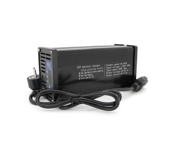 Зарядний пристрій Jinyi для акумуляторів LiFePo4 48V(58,4V),16S,8Aштекер Triangle plug (T-tipe/IEC/C13 N+L-),з індикацією,BOX