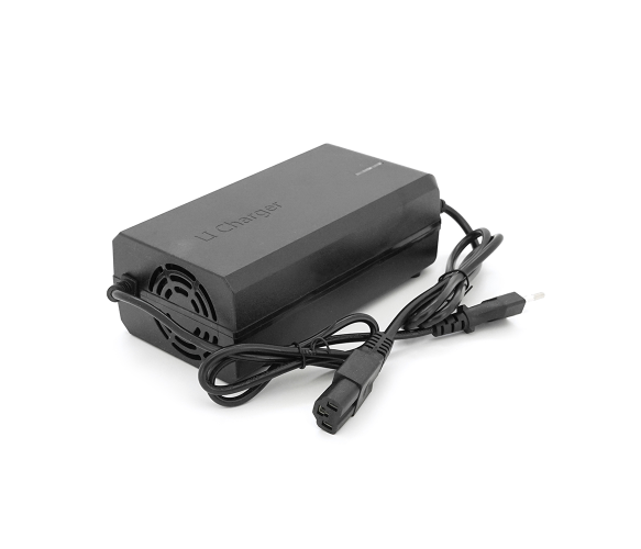Зарядний пристрій Jinyi для літієвих акумуляторів 48V 5A, штекер Triangle plug (T-tipe/IEC/C13 N+L-), з індикацією, DC:54.6V 5A, BOX