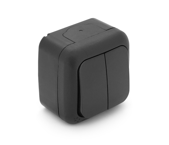 Вимикач подвійний ViKO Palmiye зовнішнього монтажу, вологозахищений IP54, AC:110-250V, 10A, Black