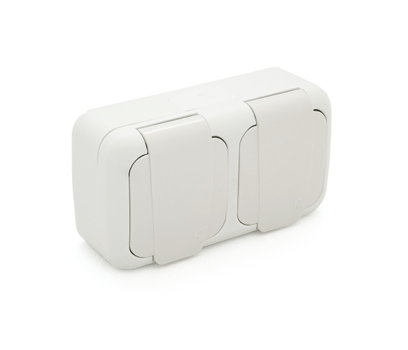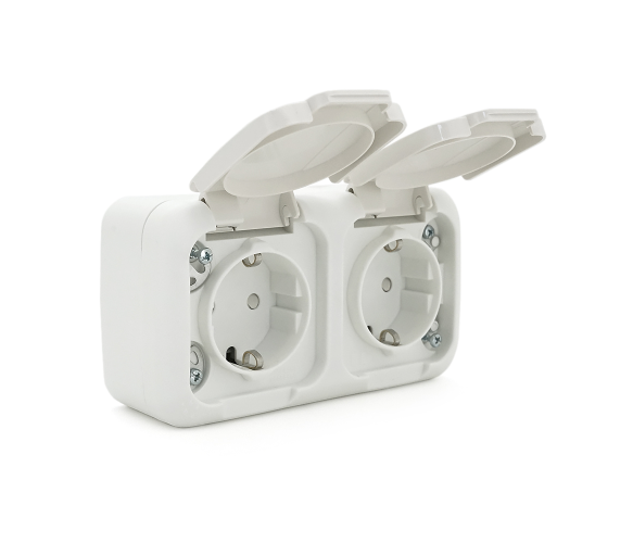 Розетка із заземленням подвійна зовнішня.Має пиловологозахист IP54.Номінальний струм:16А.Напруга: 230В.Країна виробник: Туреччина.