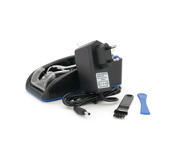 Машинка для скручування сигарет автоматична 6.5mm електрична, адаптер живлення, чорно-синій,Box