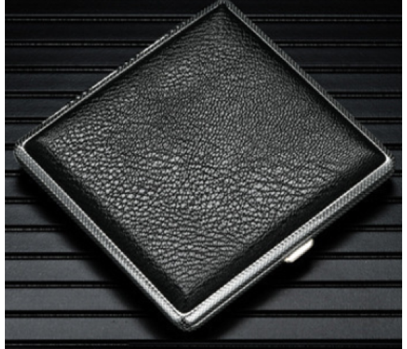 Портсигар шкіряний на 20 сигарет YH-P017-2, металевий шпон, затискач для сигарет, стійкий до тиску, вологостійкий, 99*94*19 мм, 90гр