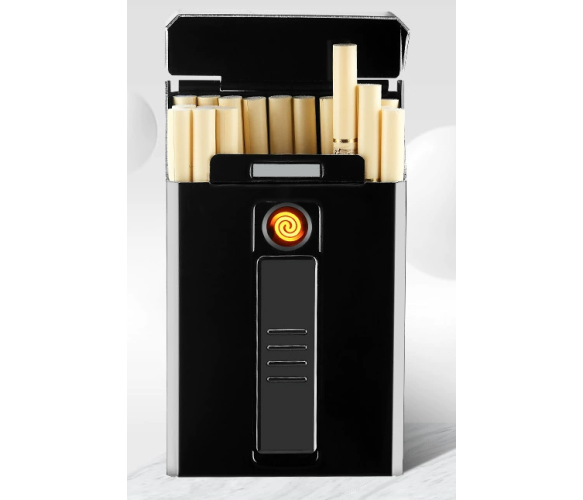 Портсигар/коробка на 20 сигарет YH9011 із запальничкою (перезаряджається), з кришкою, стійкий до тиску, вологостійкий, USB, алюміній, 120гр