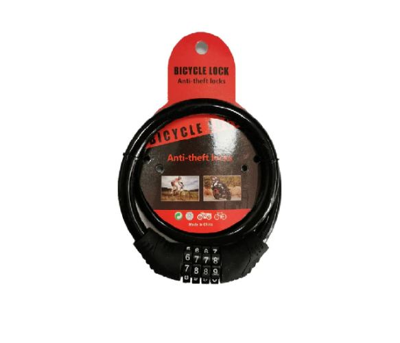 Замок велосипедний тросовий кодовий BG-202, довжина 12*600мм, АBS/сталевий дріт, Black