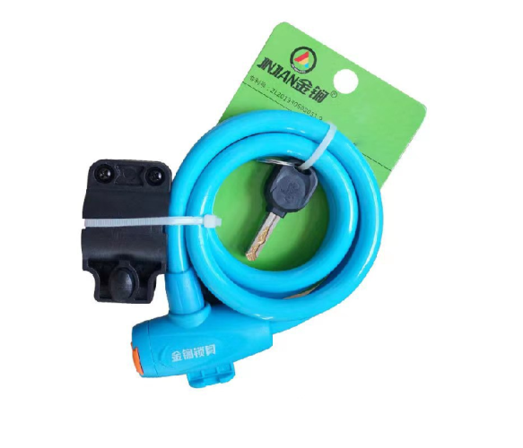 Замок тросовий велосипедний на ключі Golden Mace Lock 588, довжина 12*1200мм, з підставкою, PVC/сталь, Blue