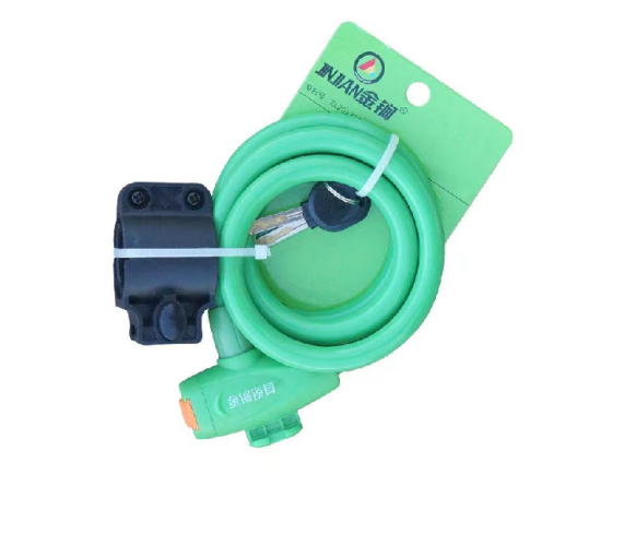 Замок тросовий велосипедний на ключі Golden Mace Lock 588, довжина 12*1200мм, з підставкою, PVC/сталь, Green