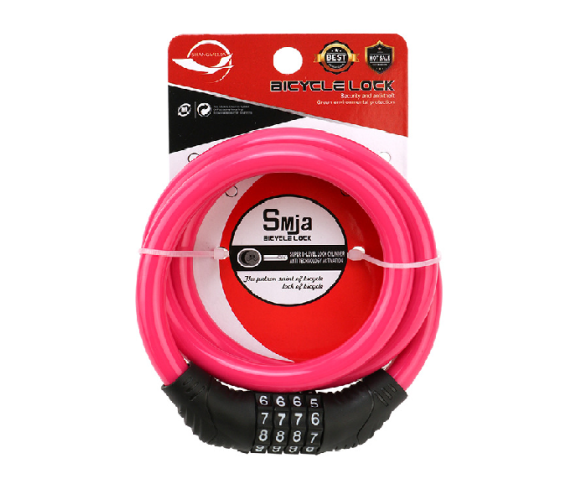 Замок велосипедний тросовий кодовий Smja-95, довжина 10*950мм, АBS/сталевий дріт, Pink