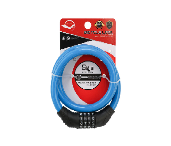 Замок велосипедний тросовий кодовий Smja-95, довжина 10*950мм, АBS/сталевий дріт, Blue