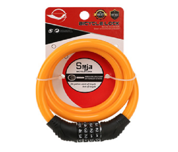 Замок велосипедний тросовий кодовий Smja-95, довжина 10*950мм, АBS/сталевий дріт, Orange