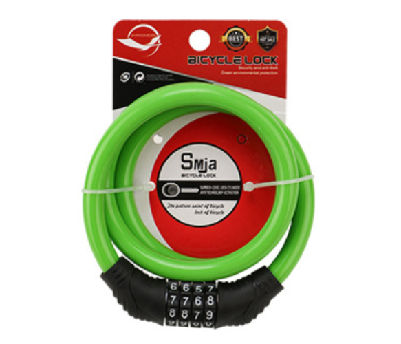 Замок велосипедний тросовий кодовий Smja-95, довжина 10*950мм, АBS/сталевий дріт, Green