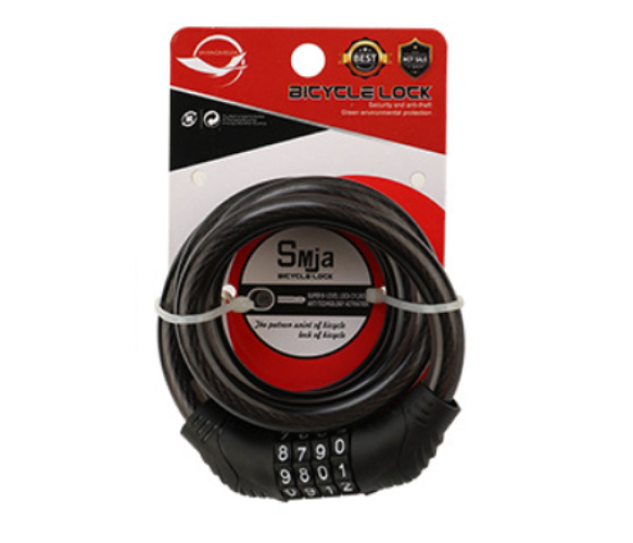 Замок велосипедний тросовий кодовий Smja-95, довжина 10*950мм, АBS/сталевий дріт, Black