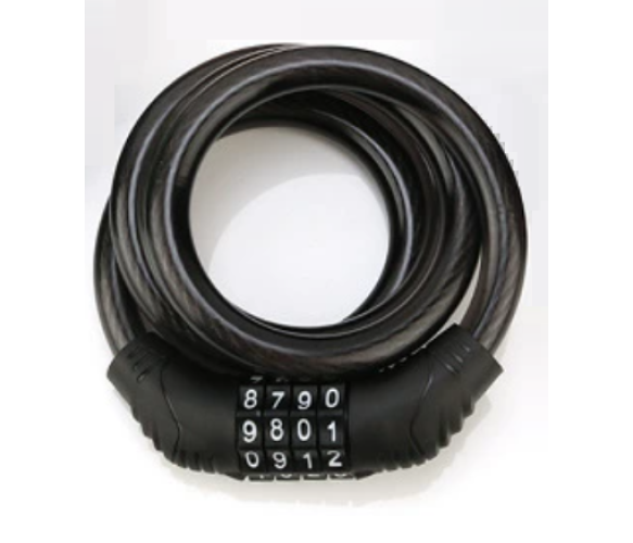 Замок велосипедний тросовий кодовий Smja-115, довжина 10*1150мм, АBS/сталевий дріт, Black