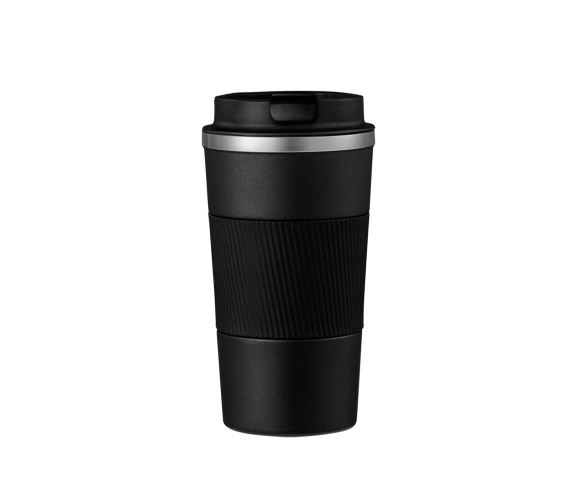 Термокухоль Merlion з нержавіючої сталі, об'єм 510 мл., чорний, з силіконовим чохлом та відкидною кришкою