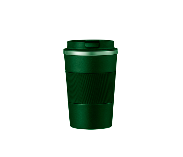 Термокухоль Merlion з нержавіючої сталі, об'єм 380 мл., зелений, з силіконовим чохлом та відкидною кришкою