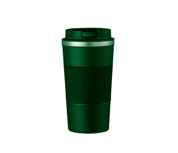 Термокухоль Merlion з нержавіючої сталі, об'єм 510 мл., зелений, з силіконовим чохлом та відкидною кришкою