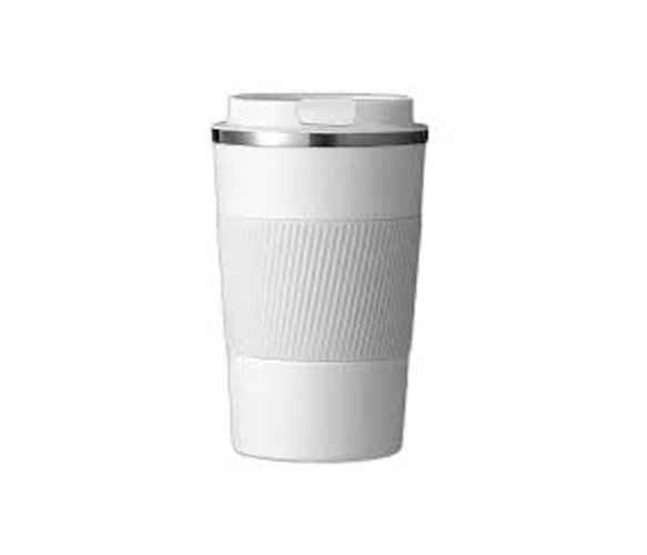 Термокухоль Merlion з нержавіючої сталі, об'єм 380 мл., білий, з силіконовим чохлом та відкидною кришкою