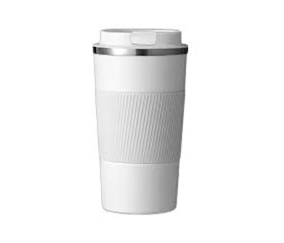 Термокухоль Merlion з нержавіючої сталі, об'єм 510 мл., білий, з силіконовим чохлом та відкидною кришкою