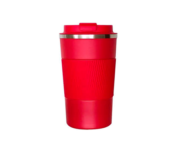 Термокухоль Merlion з нержавіючої сталі, об'єм 380 мл., червоний, з силіконовим чохлом та відкидною кришкою