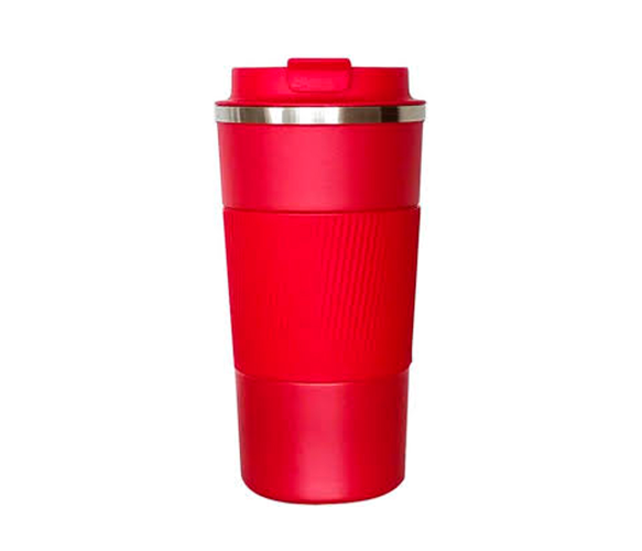 Термокухоль Merlion з нержавіючої сталі, об'єм 510 мл., червоний, з силіконовим чохлом та відкидною кришкою