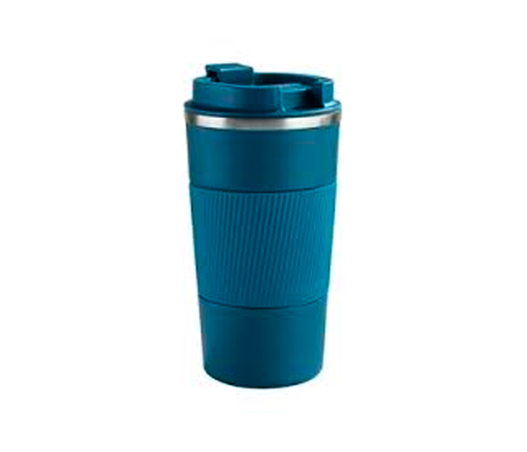 Термокухоль Merlion з нержавіючої сталі, об'єм 510 мл., синій, з силіконовим чохлом та відкидною кришкою