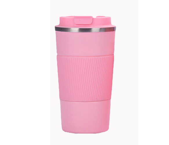 Термокухоль Merlion з нержавіючої сталі, об'єм 510 мл., рожевий, з силіконовим чохлом та відкидною кришкою
