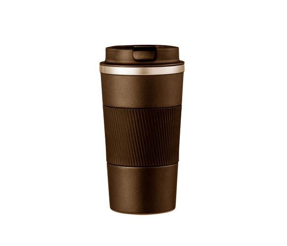 Термокухоль Merlion з нержавіючої сталі, об'єм 510 мл., коричневий, з силіконовим чохлом та відкидною кришкою